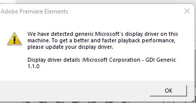PE 2023 message says "we have detected generic Microsoft's display driver ...... please updated your