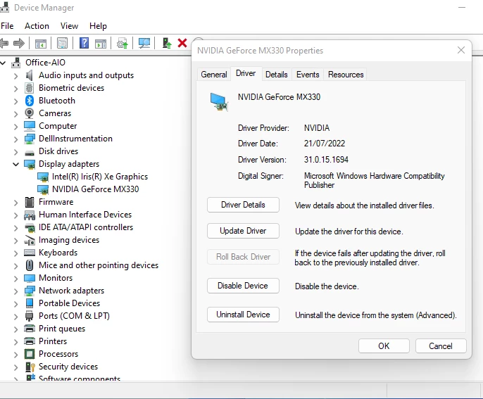 My m/c is a Dell Insiron 7700 AIO running Windows 11. I have 2 display drivers both have their own respective display drivers.So why is there a problem? See attached files.