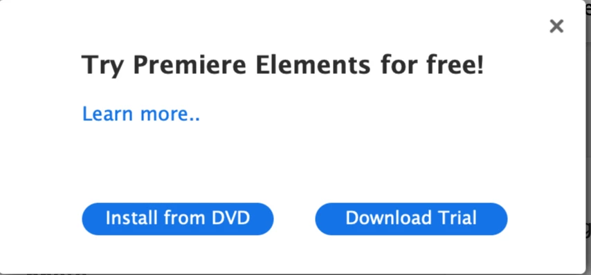 For the first time I thought I’d give the Video Editor a try-out. But on clicking on the icon all I get is an invitation to “Try Premier Elements for Free” and suggesting I either install from a DVD (which I have not got) or “Download Trial” [see screen shot]