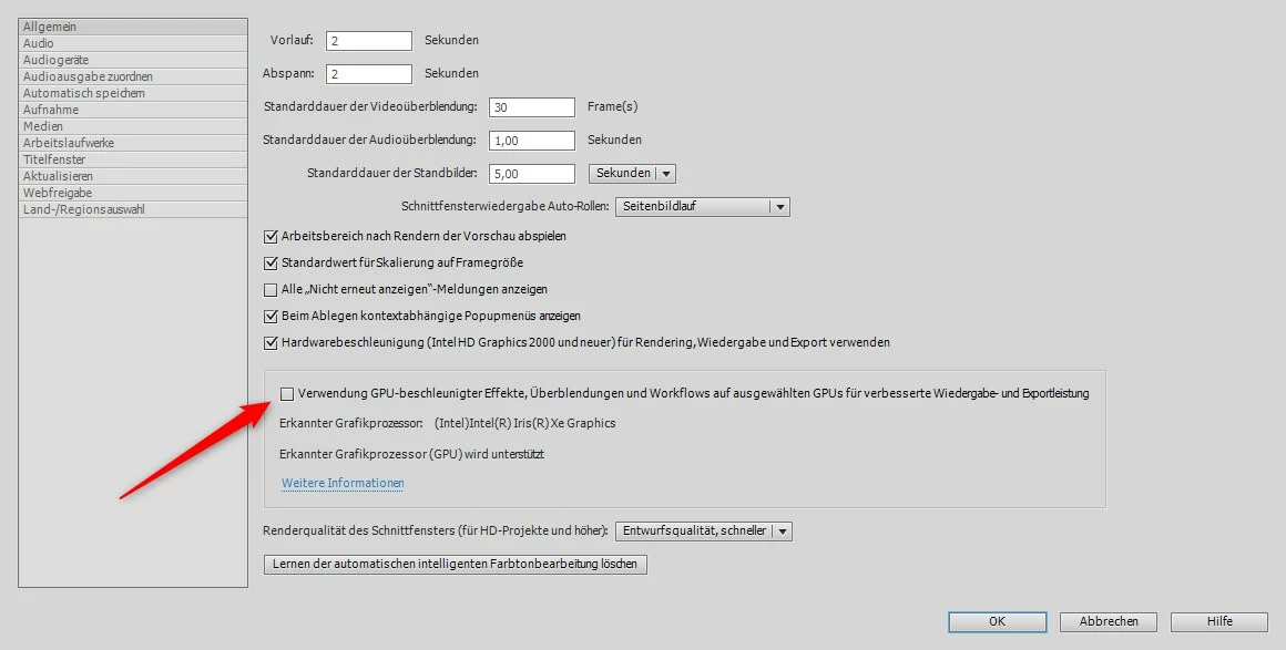 I tried to deactivate the GPU Support in PrE 2021: