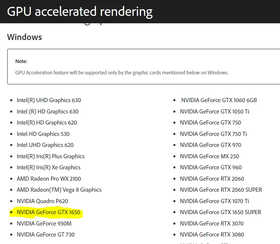 Hi, I´ve bought a Geforce GTX 1650, which should be supported by Premiere Elements, but my Premiere Elements 2020 does not recognize the card. I have updated the drivers, reinstalled Premerie Elements, but the graphics card is still not recognized or deteched.