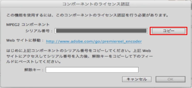 Mpeg-2を取り込めません。 コンポーネントのライセンス認証画面をクリックしてもAdobeのHPに繋がらず、ライセンス認証ができません