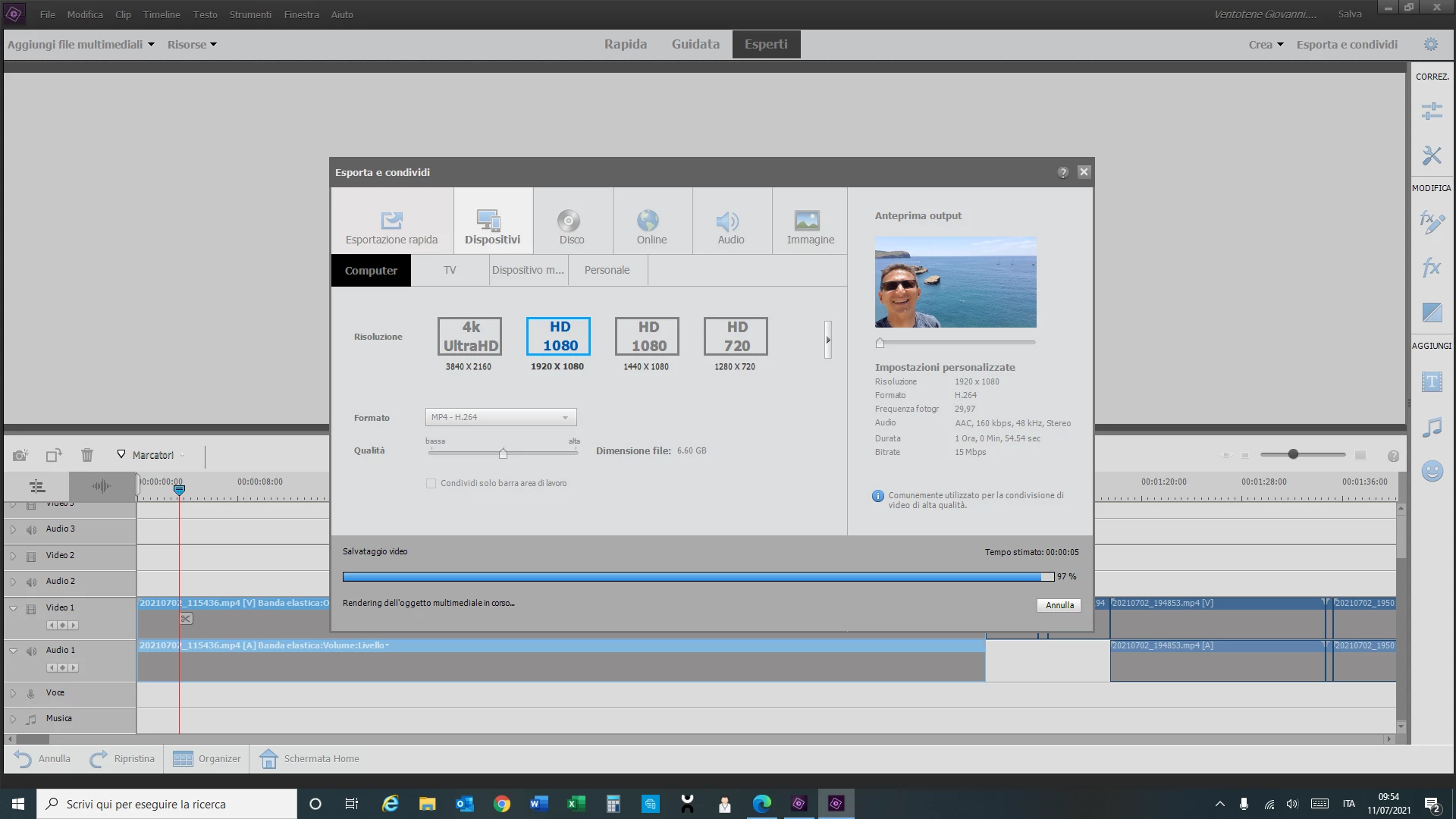 Premier Elements 2021 doesn't complete export. The process will stop at 95-97% without errors. The .mp4 file is not created. The clip I am tring to create is just a sequence of 4K videos and photos (1 hour duration, output 4k video) with original audio without any effect applied. It takes about an hour and a half to complete the first 95-97% then you can see non more progress. The program doesn't crash. The program allow to stop the process but if I wait (even a full night) nothing happens, there is no progress and no error message. I tried to separate the sequence in shorter parts. With a sequence of about 28 minutes the process is completed correctly. On the 6th June I succeded to complete a similar video of 1 hour and 19 minutes without any problem.