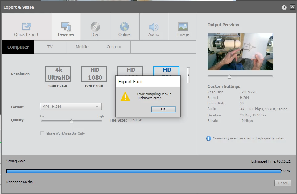 Everything going great until going to share. Clicked on different device options and Bam - everything disappeared. Reopend the project and it was back to the previous version - didn't save any recent changes before crashing.