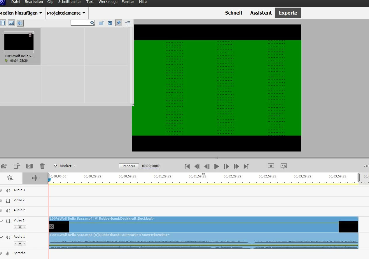 Importierte mp4 erscheinen im Vorschaufenster und nach dem Export (satt) grün, mit horizontalen Streifen. Das gleiche Programm mit der gleichen Lizenz auf einem Zweitgerät installiert funktioniert tadellos.