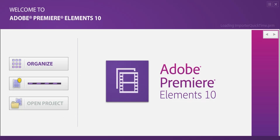 I purchased the Premiere Elements 10, and installed all the discs onto my 64 bit Windows 7 computer. It opens up the screen for "organize, new project, open project" and when selecting New Project it opens a load screen, and then closes and goes back to the main screen after it gets to "loading importerquicktime.prm"