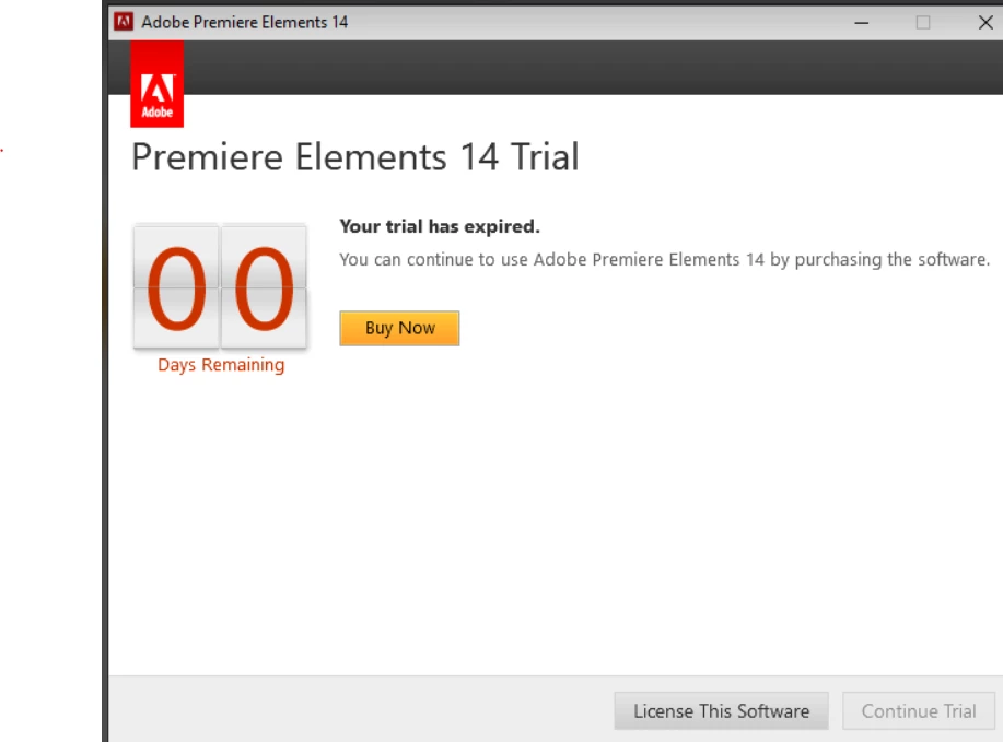 Premiere Elements 14 Purchased in 2016 is Now Locking Me Out Telling Me My Trial has Expired