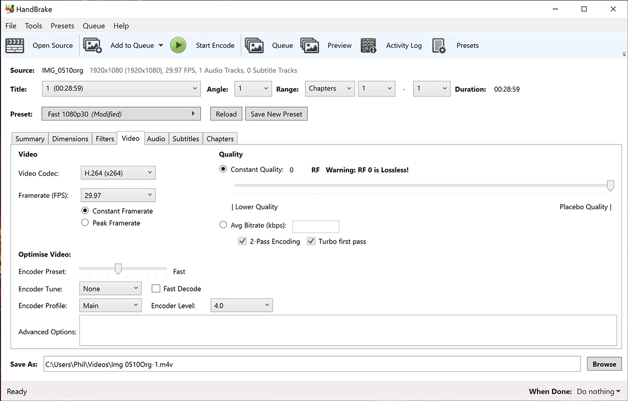 Fields: No Fields (Progressive Scan)