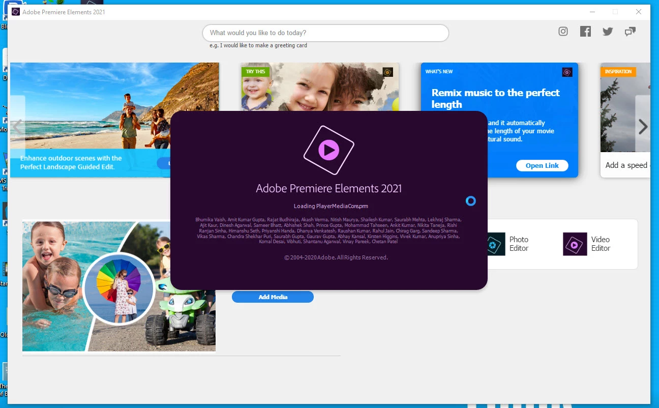 I purchased a download version of Premiere Elements 2021 this week. I was able to install it. But when I try to launch it I get as far as a window that says "Loading PlayerMediaCore.pm" and then it freezes. What should I try to make it work?
