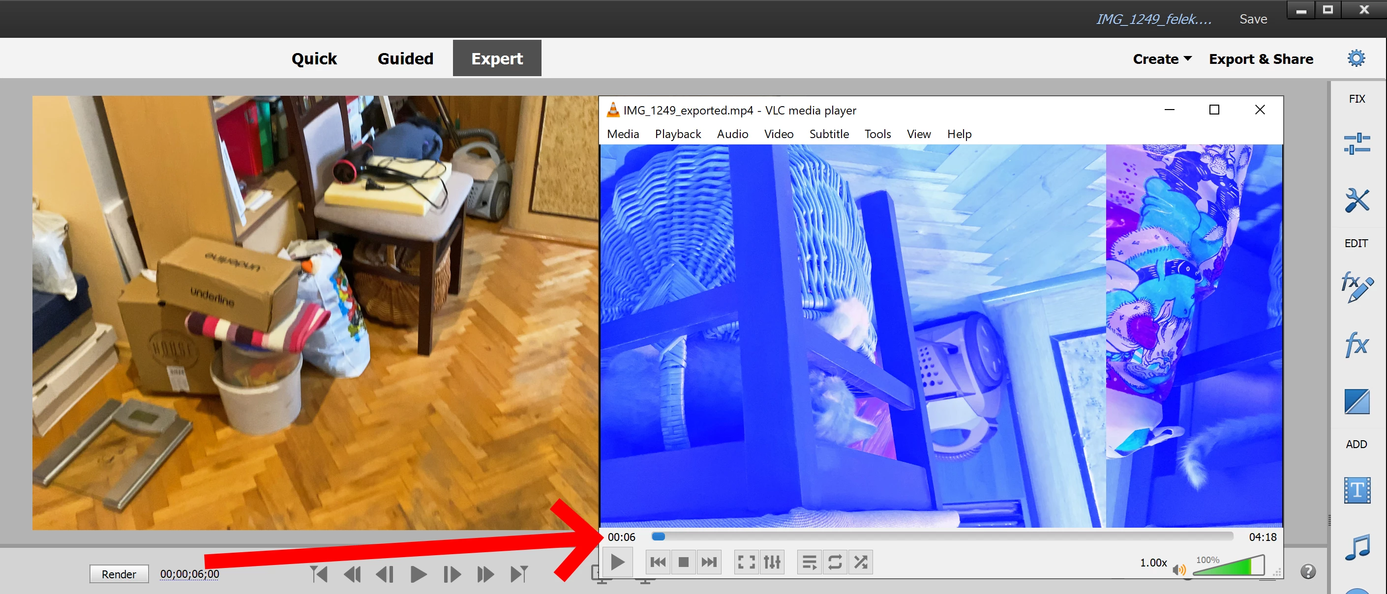 Sometimes in the exported file, Premiere Elements 2022 adds damaged frames at the beginning of the new clip in the timeline. This doesn't happen in the preview, only in the exported file.
