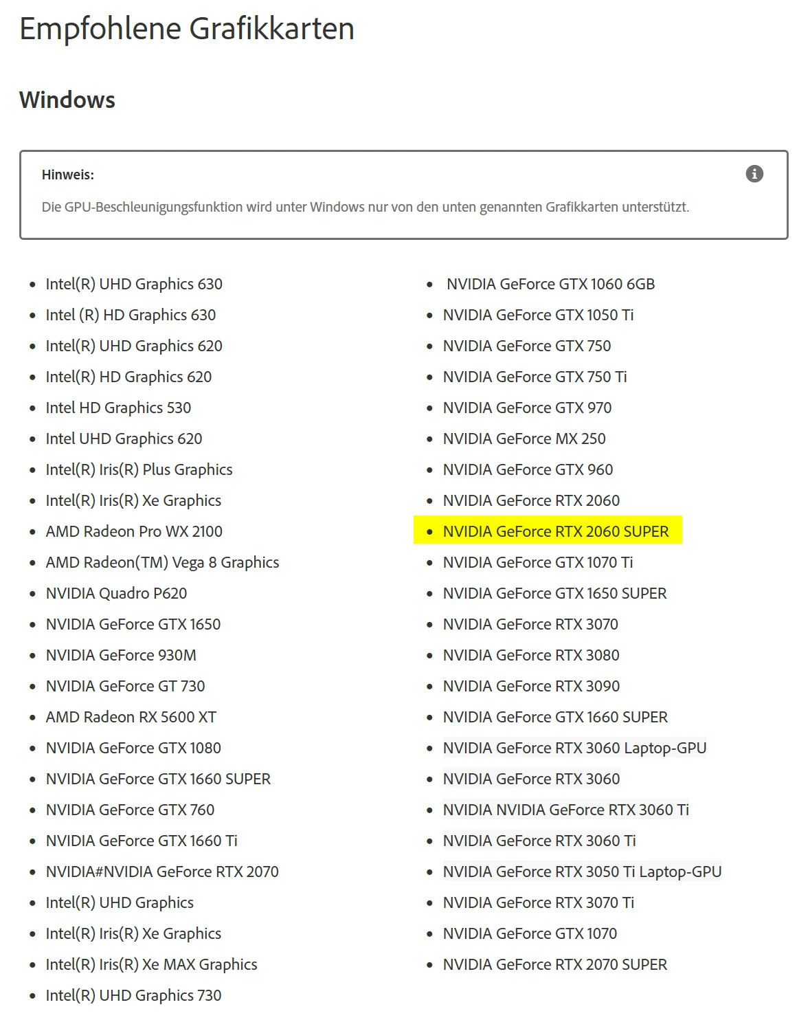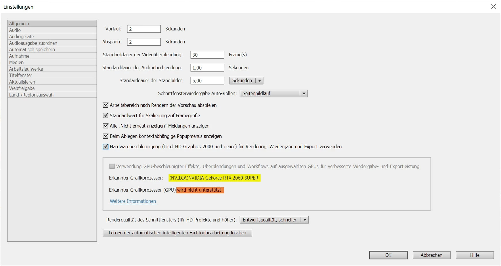 Premiere Elements 2022: Does not support NVIDIA GeForce RTX 2060 SUPER