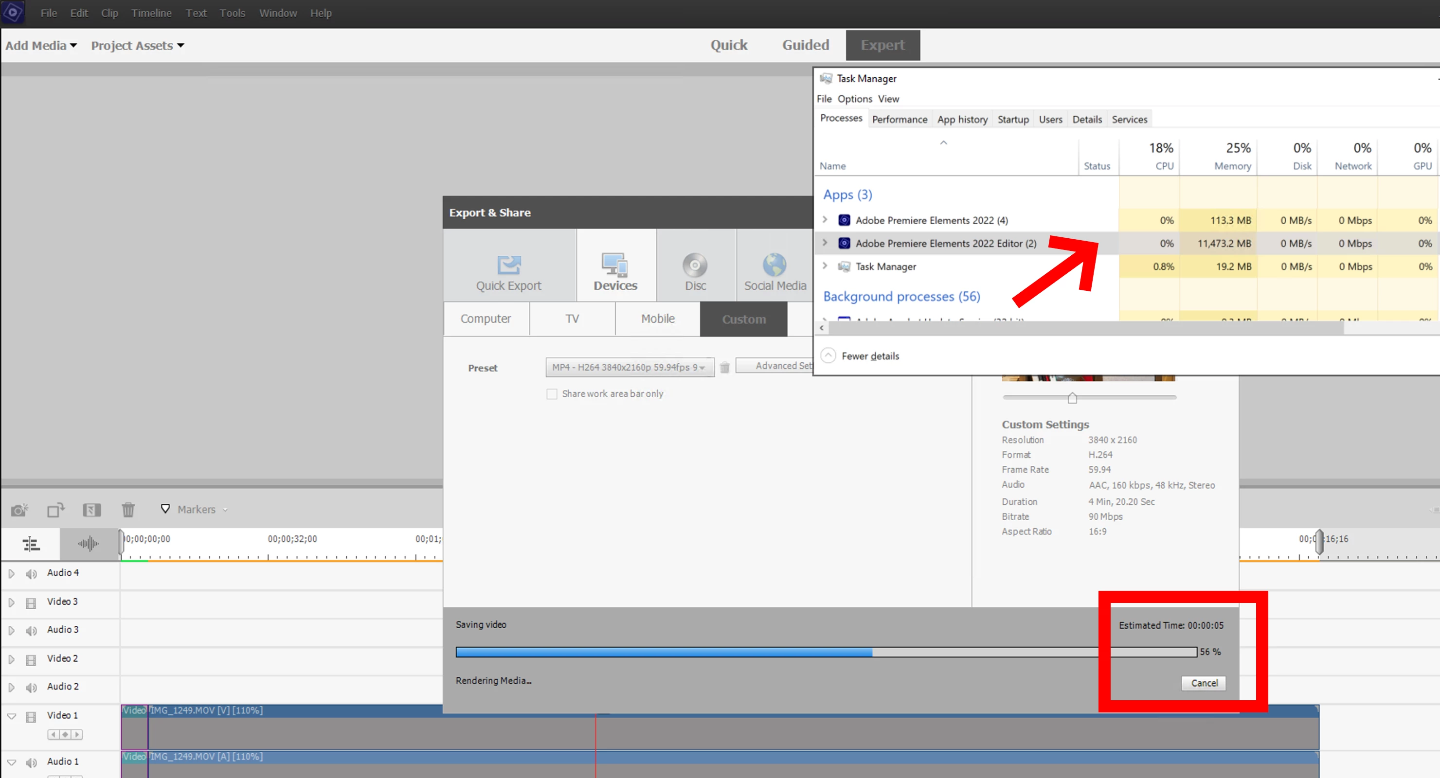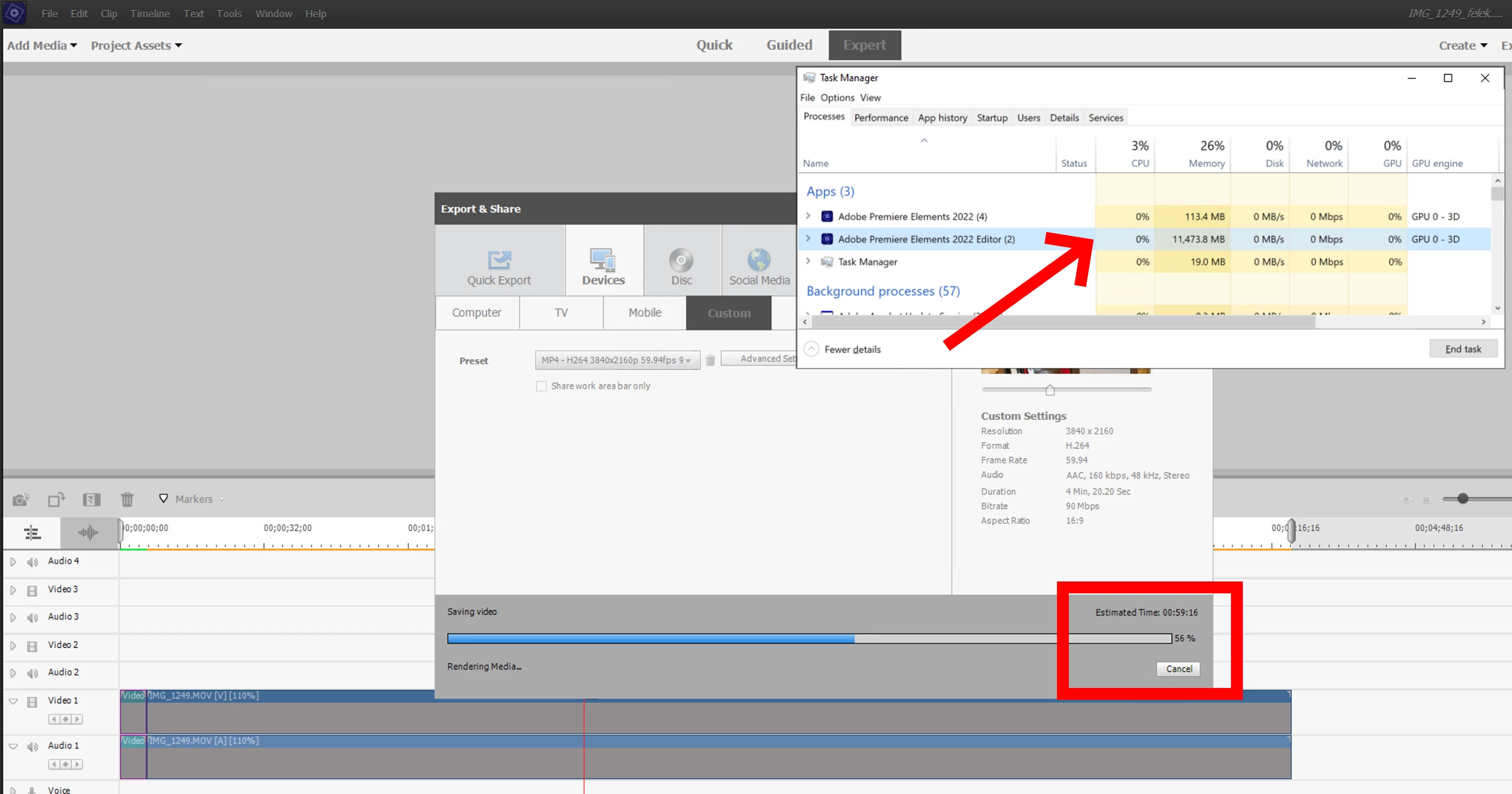 Premiere Elements 2022 stops saving video