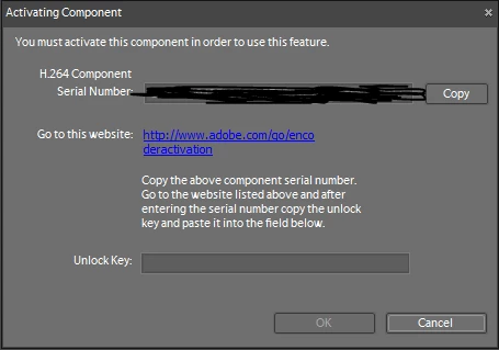 I have Adobe Premiere Elements 7 (yes, it's an old version), and I'm trying to use the H.264 encoder for the first time. It says I need to activate it.