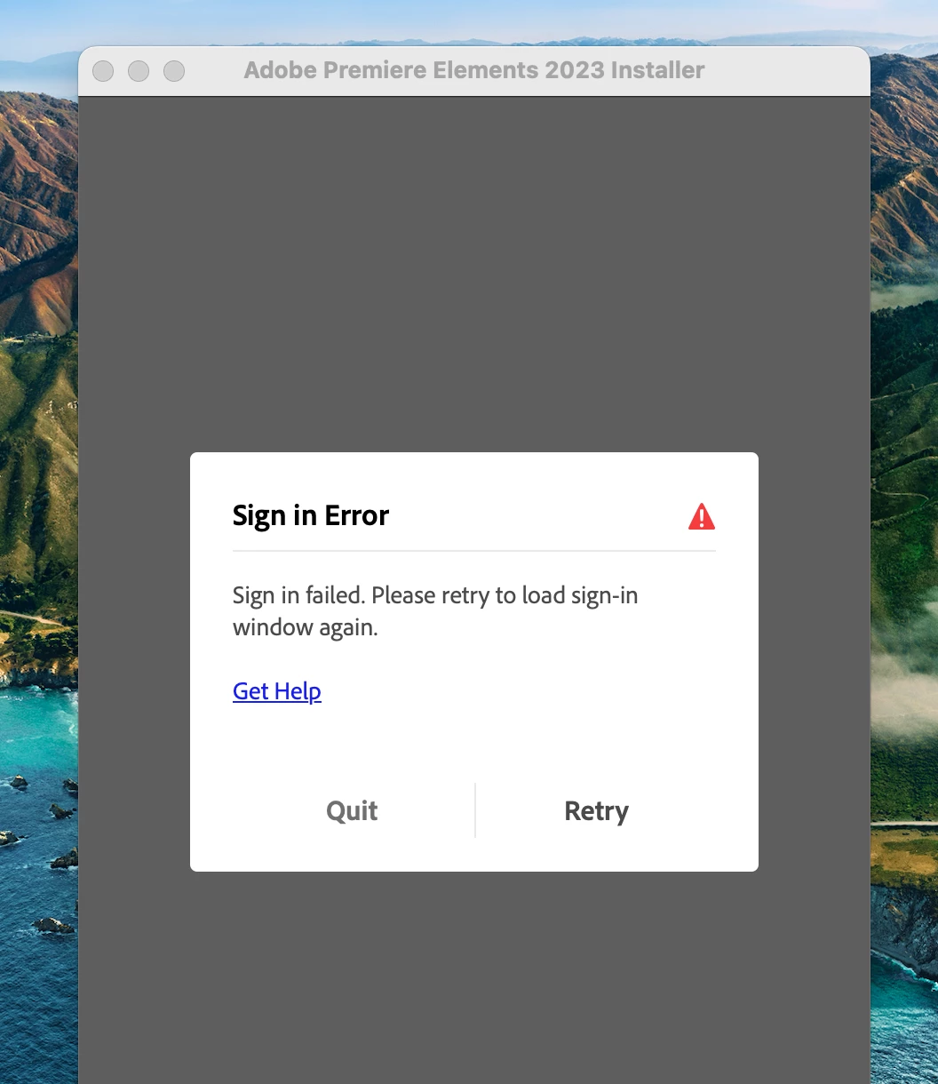premiere elements sign in error (macOS)
