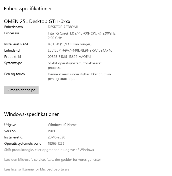 I attach screendump with my system data (in danish, but I think that it should be recognizable)