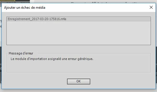 j'obtiens le message suivant Que se passe t'il cela marchait parfaitement bien avec la version 14 d'Adobe Première éléments