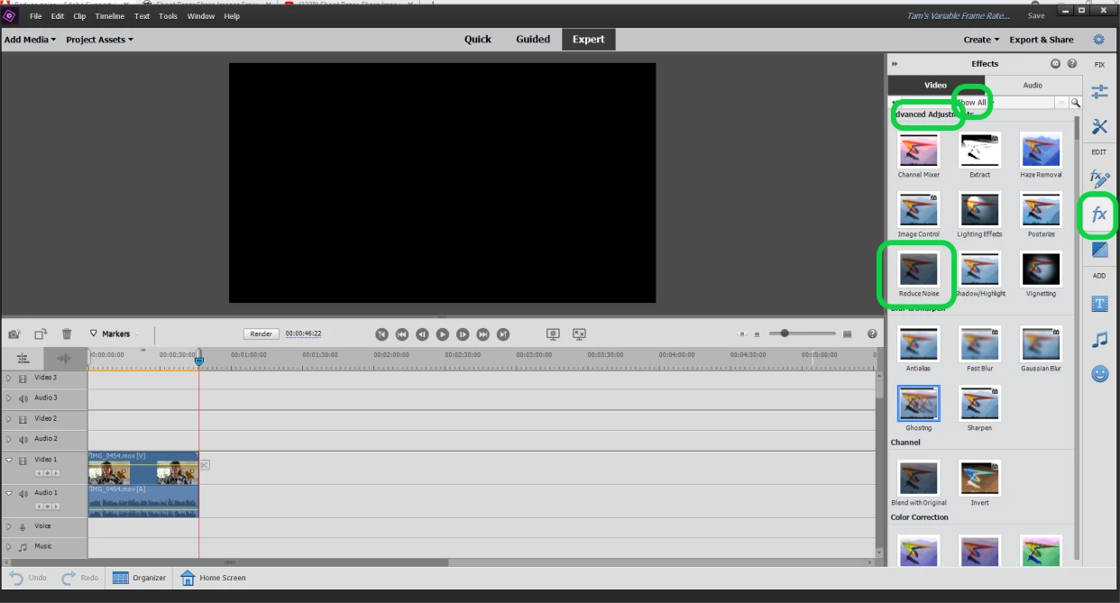 I have a trial version of Premiere Elements 2021 and want to clean up a grainy video. The help video says to go to FX find reduce noise and drag to video. I can't find reduce noise, is this available on the trial download?