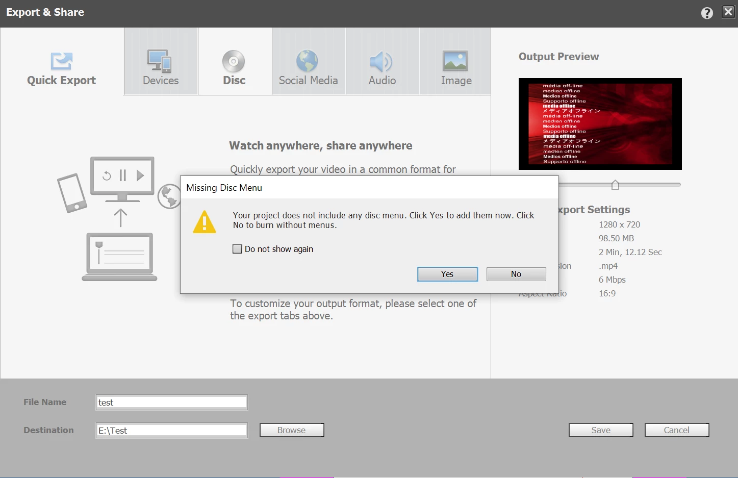 I pulled a completed MP4 I created earlier in PE2021 and placed it on a new timeline in a fresh project to burn to disc. Somehow when I got to Export & Share so as to burn this project to disk, I jump immediately into a movie menu option. There is no way around it, I have to chose a template or I can't continue. I have no markers on the timeline and I can find no check box in the preferences etc to turn off a movie menu by default funtion if there is such a thing. I tried deleting the project and starting a new one but we always come to the movie menu choise.