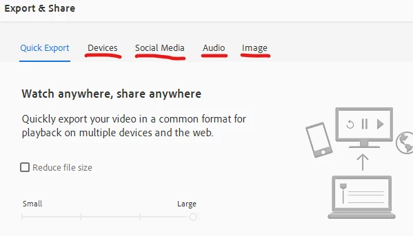 On Premiere Elements 2024, I use customized export settings on each of the tabs provided (highlighted in red on the image below)