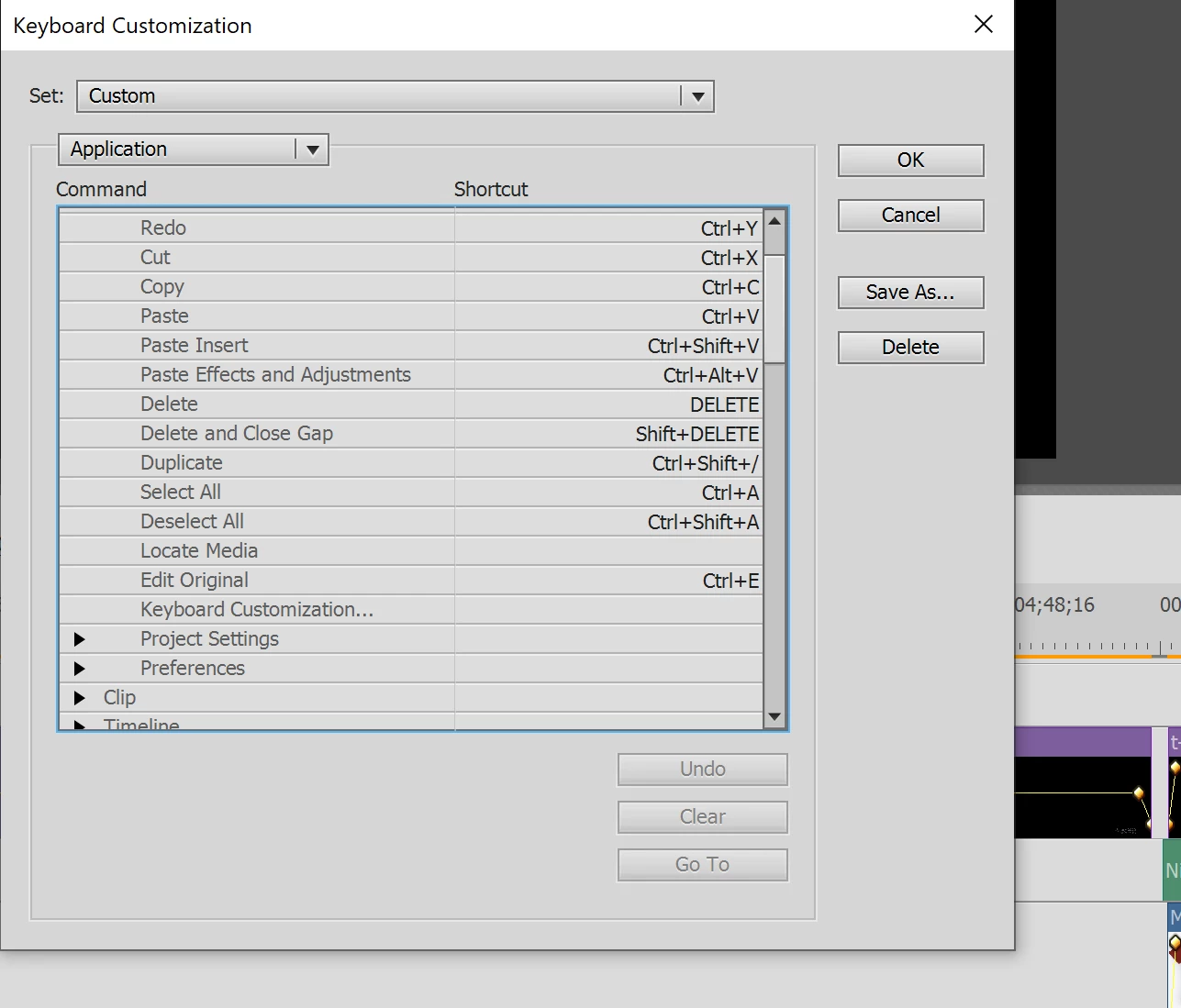 When I just use "delete", all the clips will move to close the gap. I don't want that. I want to keep the gap. So, when I use "shift+delete", I am able to delete a clip without closing gaps. This is good! However, if I go to the keyboard customization settings I see that "delete and close gap" is done by "shift+delete", while when I press "shift+delete" it does not close the gaps. How is this possible? I am a bit confused by these shortcuts and therefore not able to change them the way I want.