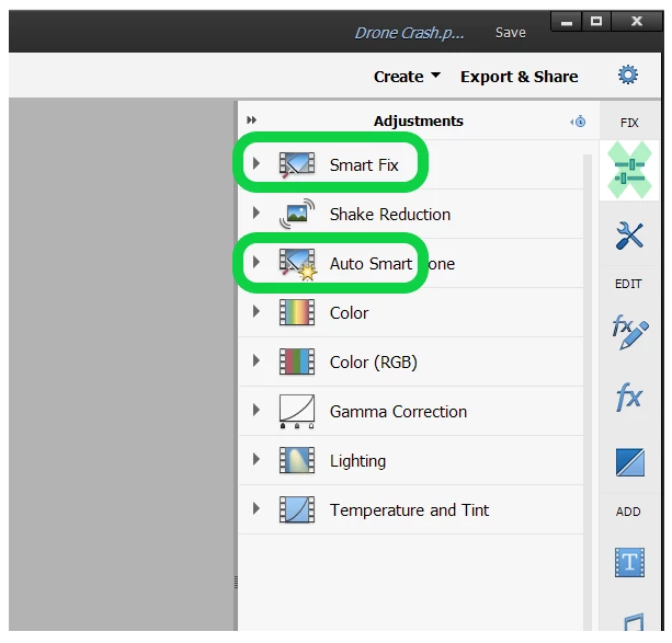 3. Is there anything in Premiere Elements similar to "Smart Fix" in Photoshop Elements? I've tried the "Smart Fix" but it didn't seem to do anything!