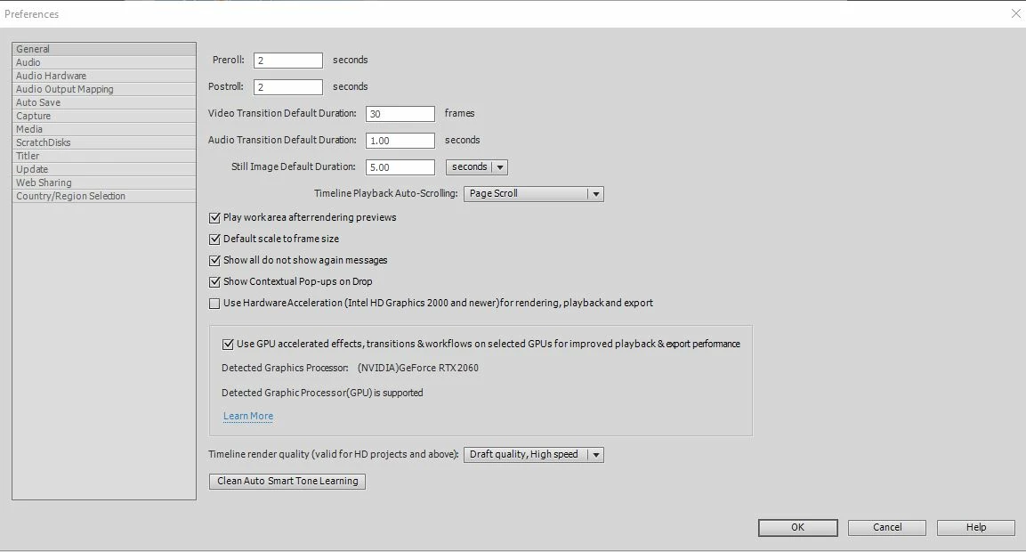 I am running Adobe Premiere Elements 2021,with Nvidia RTX2060 graphics card which is on the list as supported.Driver version "462.59-desktop-win10-64bit-international-nsd-dch-whql"
