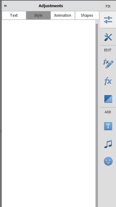 When making text titles my Style tab suddenly went blank on my last project. I was able to copy and paste from previous styles I already had in the project to get by, but now the tab remains blank in all of my new projects. (screenshot attached)