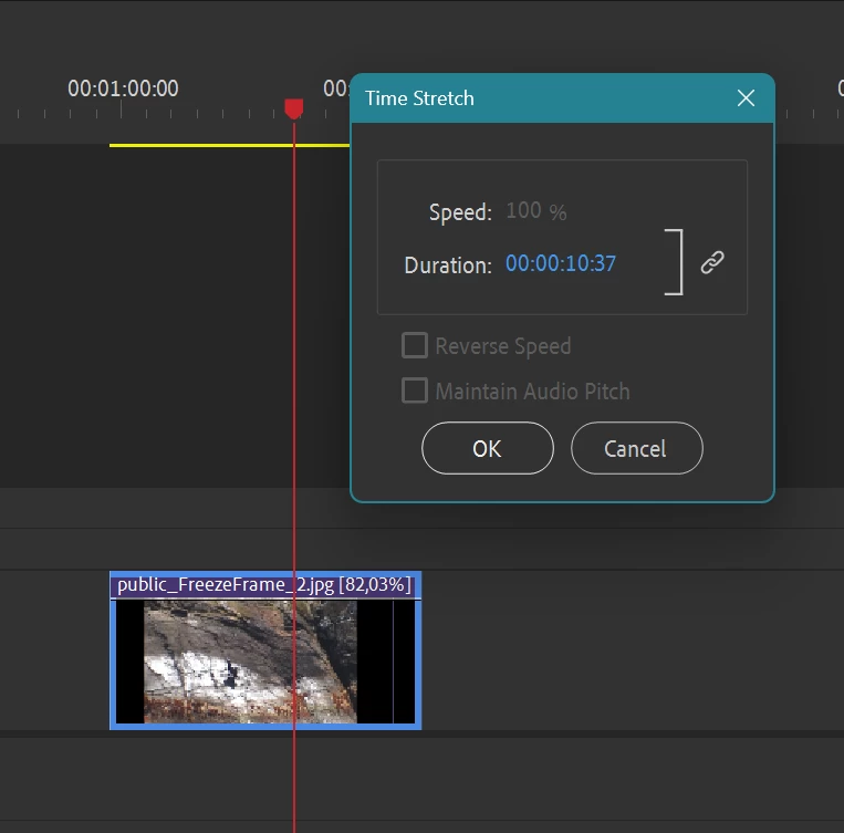 I just purchased Premeir Elements 2025 and am trying to create a time lapse video. Load my pictures and right click on the time line. Click on time stretch. The speed of 100% is grayed out. I cannot increase the speed as directed. I change the duration to 005 and click on the chain. Click on Save and it reverts back to the original settings. I got it work once on the 2024 trail version after several trys but cannot get it to work now.