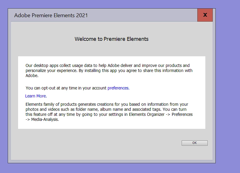 Every time I boot up Premier Elements (2021), it makes me have to dismiss the screen shown below.