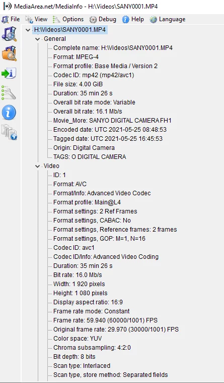 When loading a video in MP4 format from Sanyo Camcorder, which is 4GB / 35'26'' long, Premiere Elements 2021 says it is only 5'36'' long and it runs much too fast - what can I do?