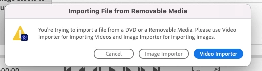 Have also tried importing via 'Files and Folders' but it gives me the below fail message and to use the Video importer function.