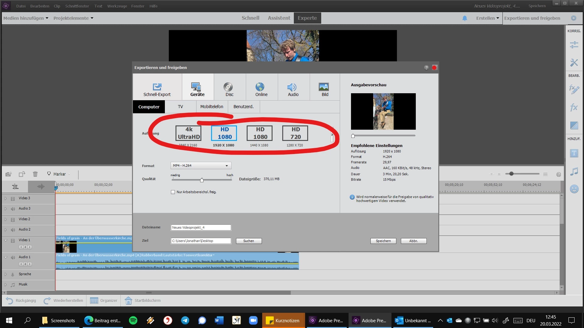 Videos im Hochformat exportieren