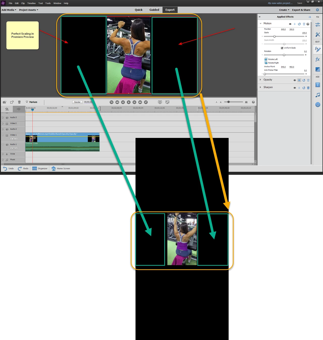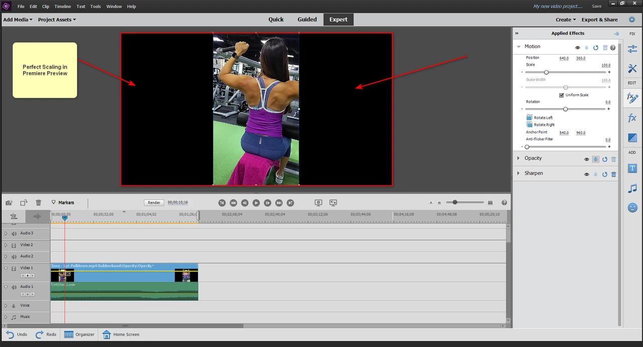 When I take a video in portrait mode, after importing it into Adobe Premiere, it looks straight (not sideways) which is what I want and perfectly scaled