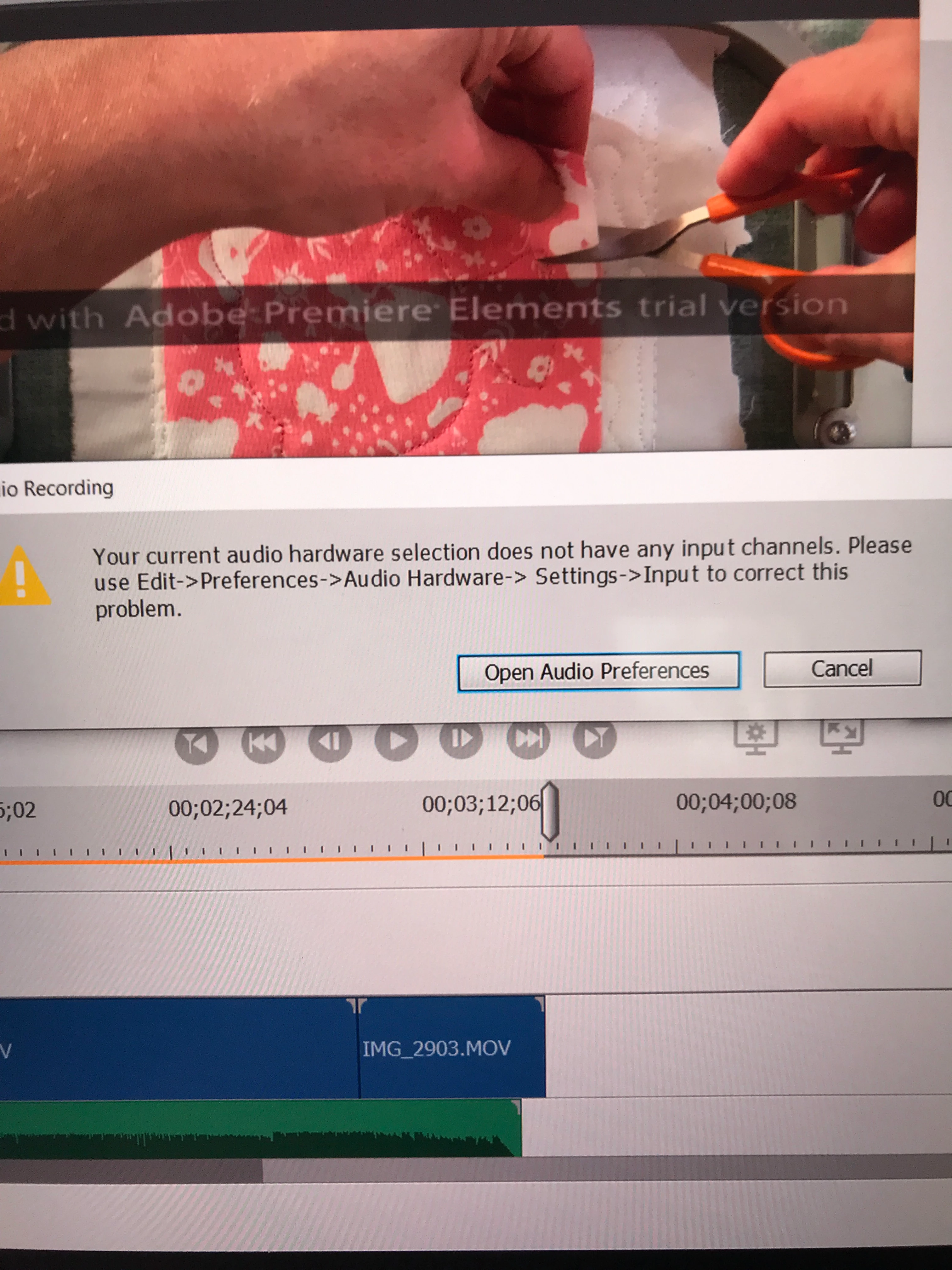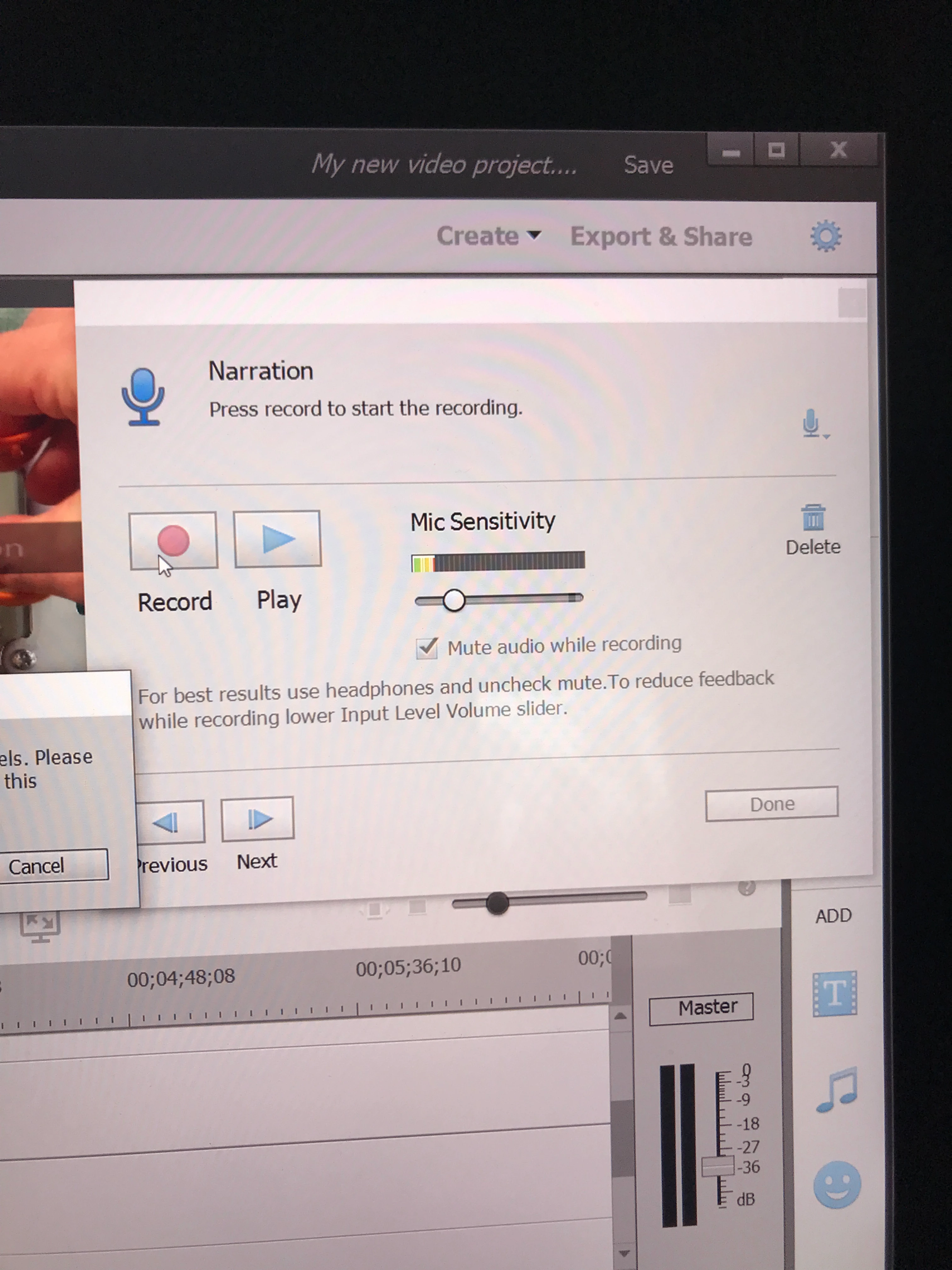 I am now wanting to put a narration over the top of this but when I go to record, it says I cant as I have no input.