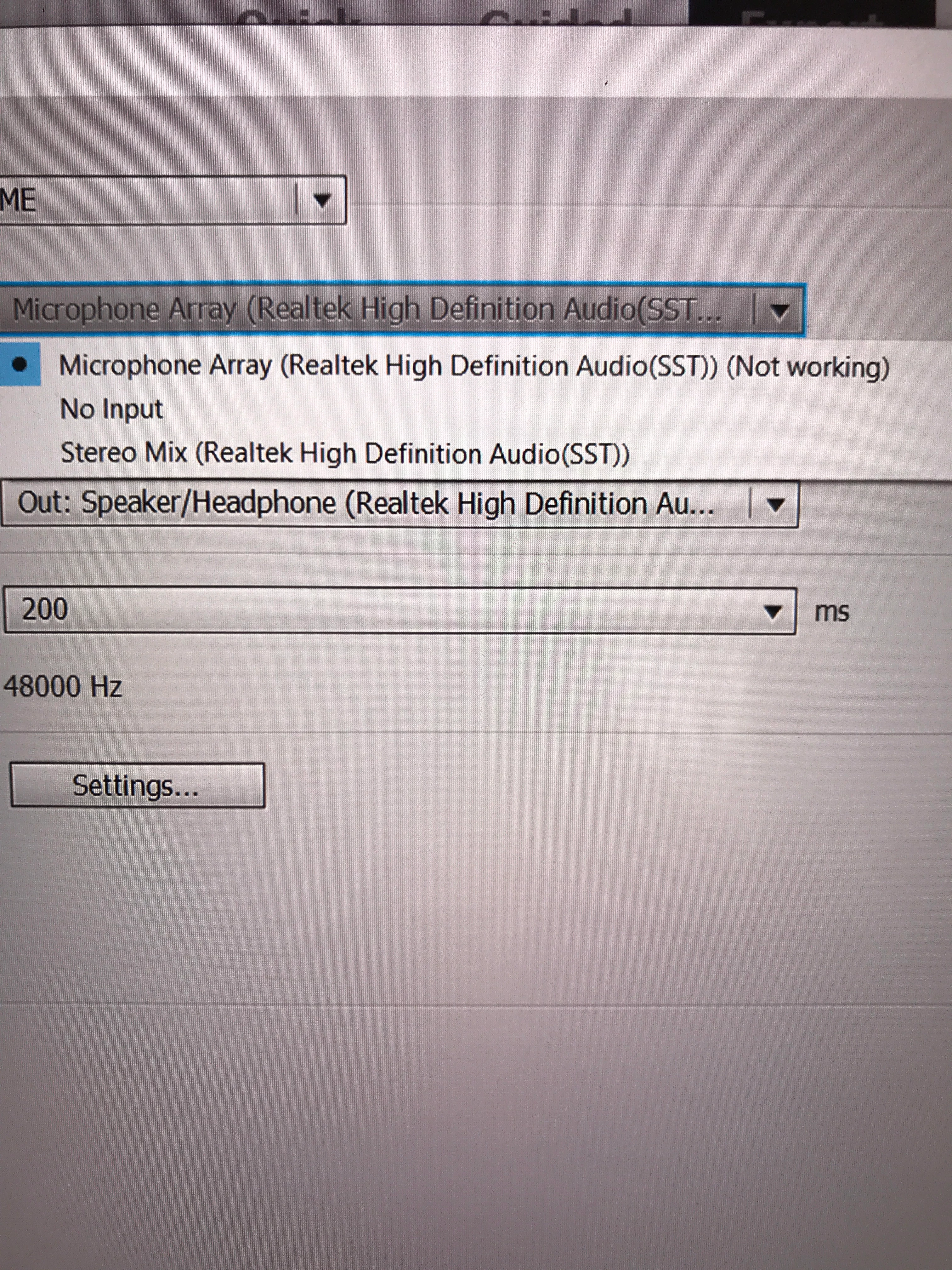I then deleted the background music and amended the default input to "microphone array" but that again came up as not working
