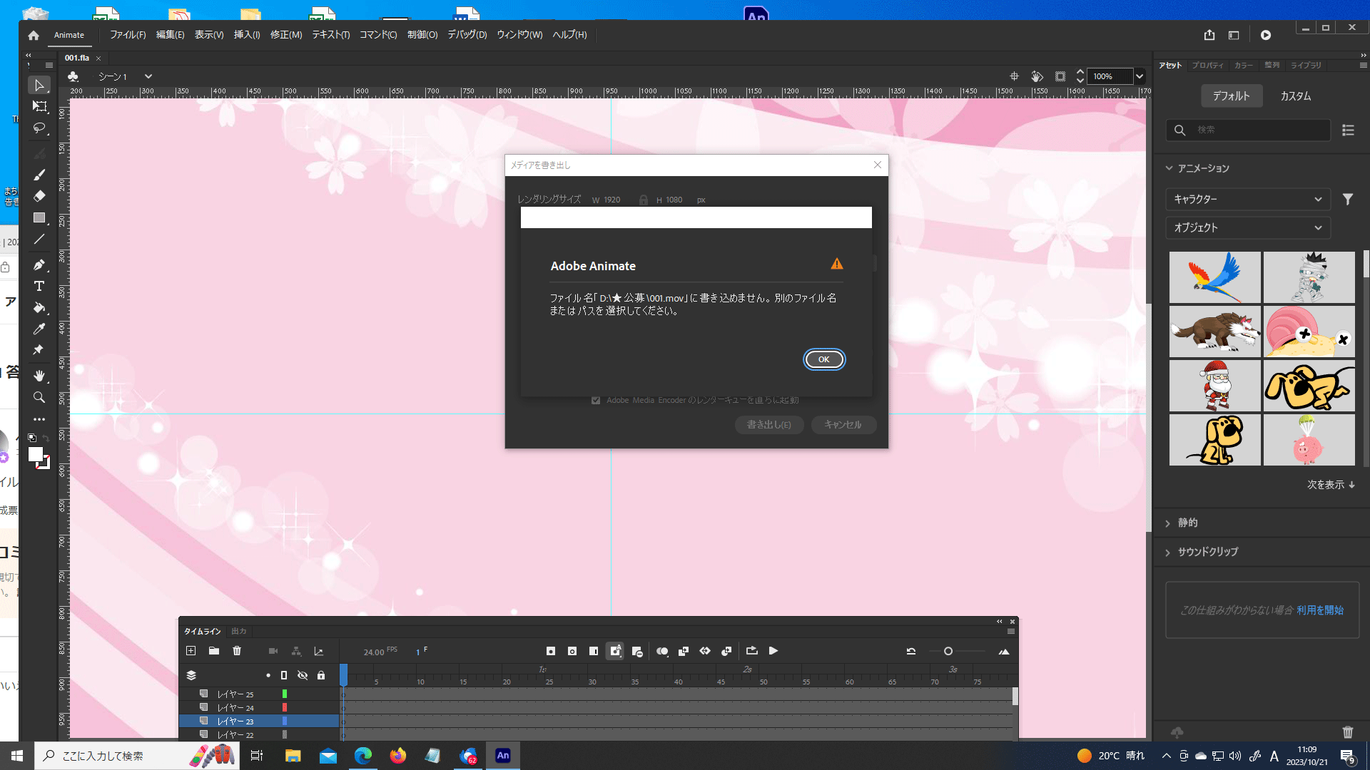 Anを使ってflaファイル(スプリクト3)をMOVに書き出そうとすると何故か「名称を変えて下さい」というエラーが出てきてしまいました。何故でしょぅか。初心者です。