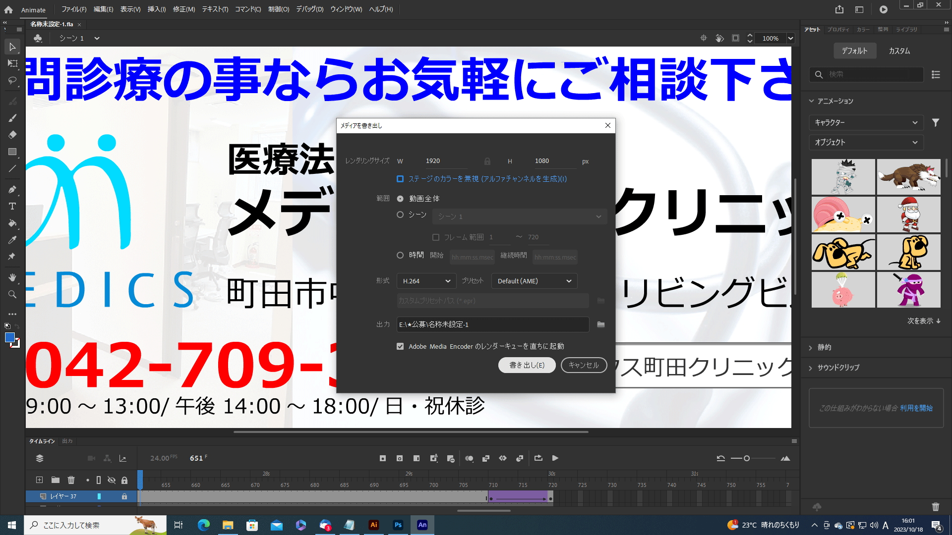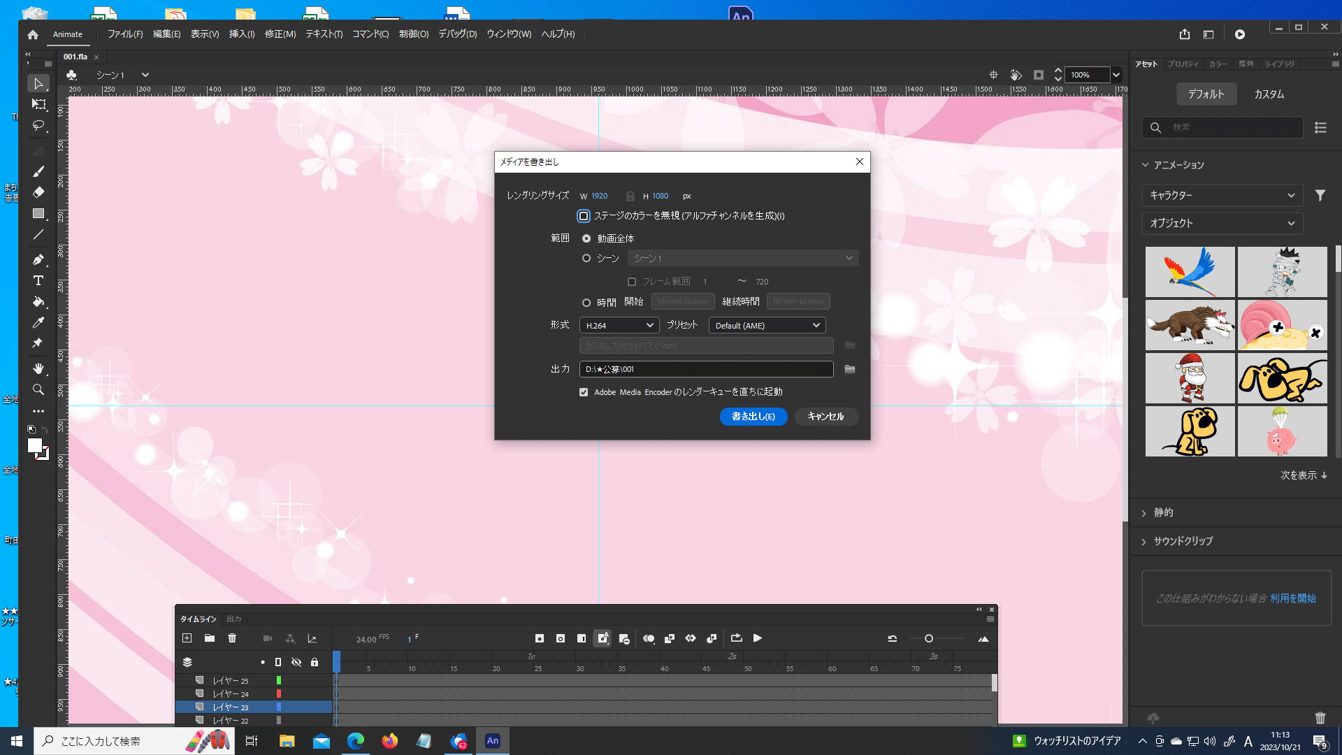 アニメーとの書き出しについて教えて下さい