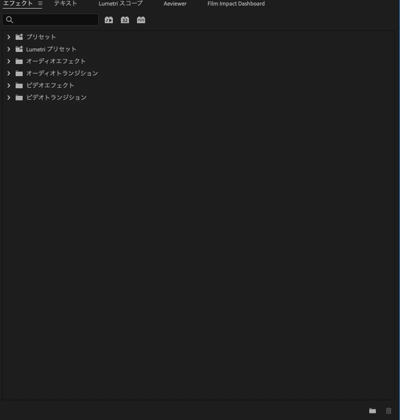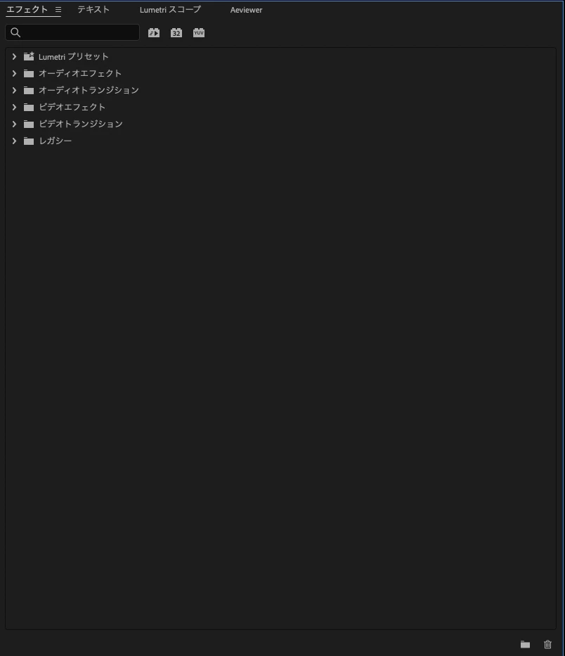 Premiere v26.0にて、エフェクトパネル内にエフェクトプリセットビンが表示されません。