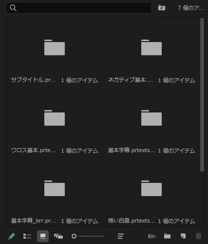 作成したテキストスタイルをプロジェクトの中にトラックアンドドロップで入れると、以下画像のように一つ一つのビンに小分けされてしまうようになりました。