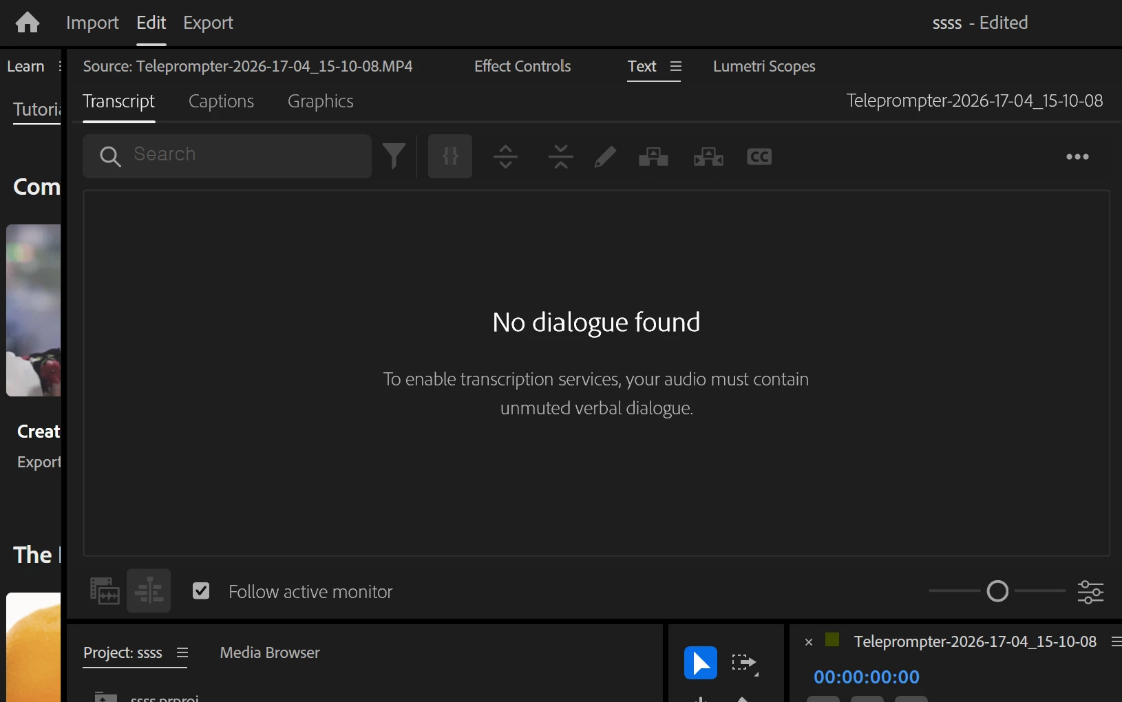 잘 되던 받아쓰기가 안되요…. 받아쓰기 파란 버튼도 없고, 한글팩 설치 재설치 다해보고, 미디어캐시제거, 프리미어프로 재설치 , 음량 높이기 등등 안해본게 없습니다. 제발 도와주세요. 계속 아래 화면만 보이네요…