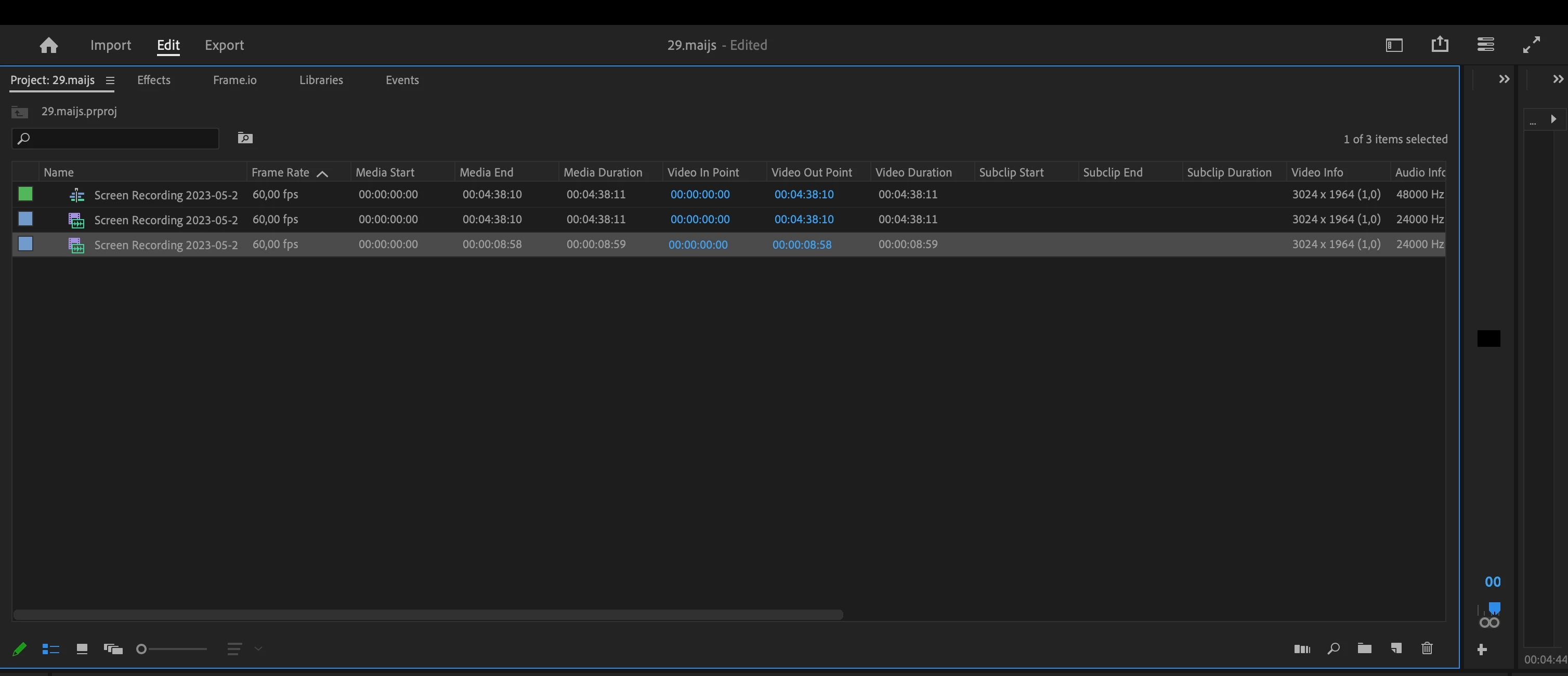 I have a 55min video that turns into a 9 second clip when i import it in premiere pro. All the screen recordings which i made before were the same length or sometimes longer and they import fine.