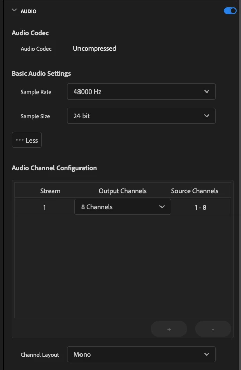 8 channel audio exporting as single mono channel
