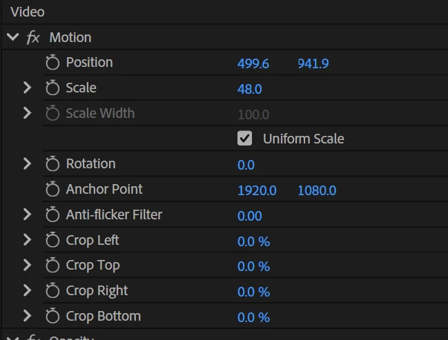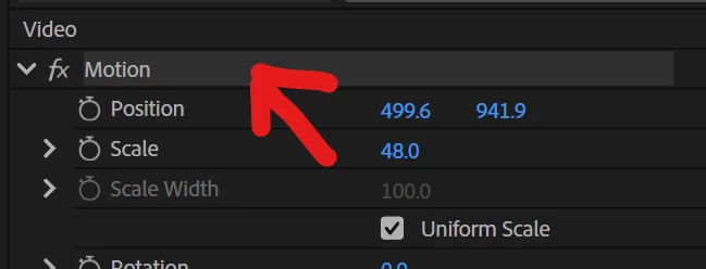 However, if I select the Motion tab and adjust the parameters, the lag disappears—the Program Monitor displays the changes quickly, smoothly, and without issues.