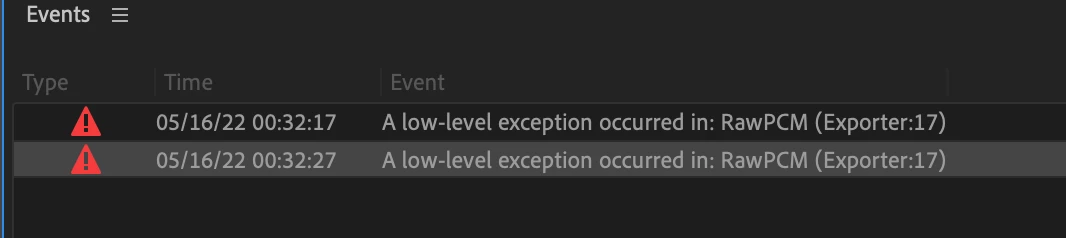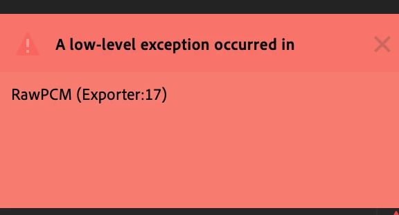 A low level exception occured RawPCM Exporter: 17