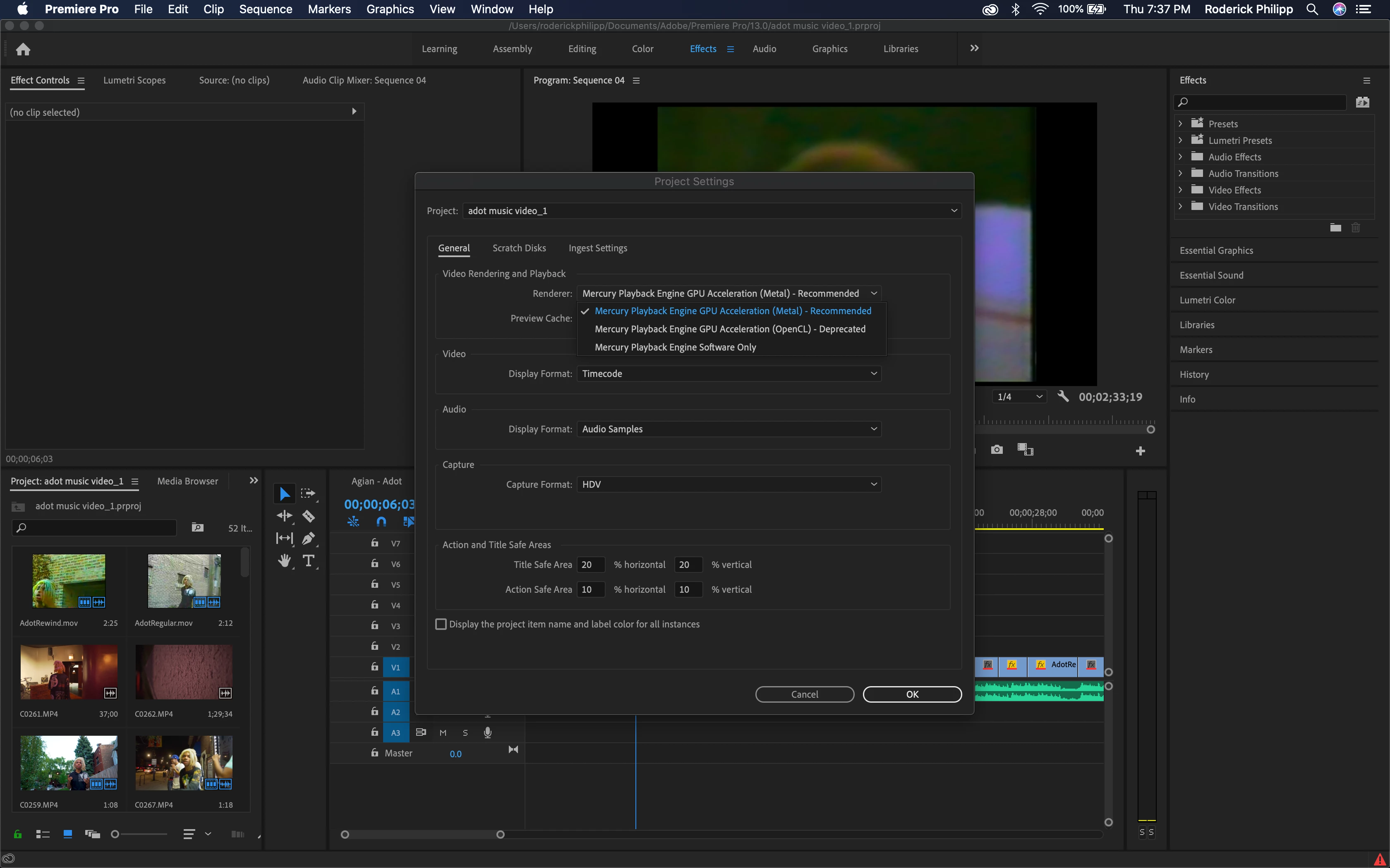 • Choose File > Project Settings > General. Select "Software Only" for Mercury Playback Engine GPU Acceleration.