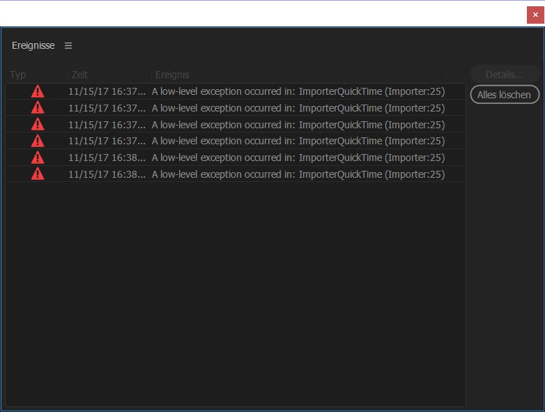A low-level exception occurred in: ImporterQuickTime (Importer:25) Error