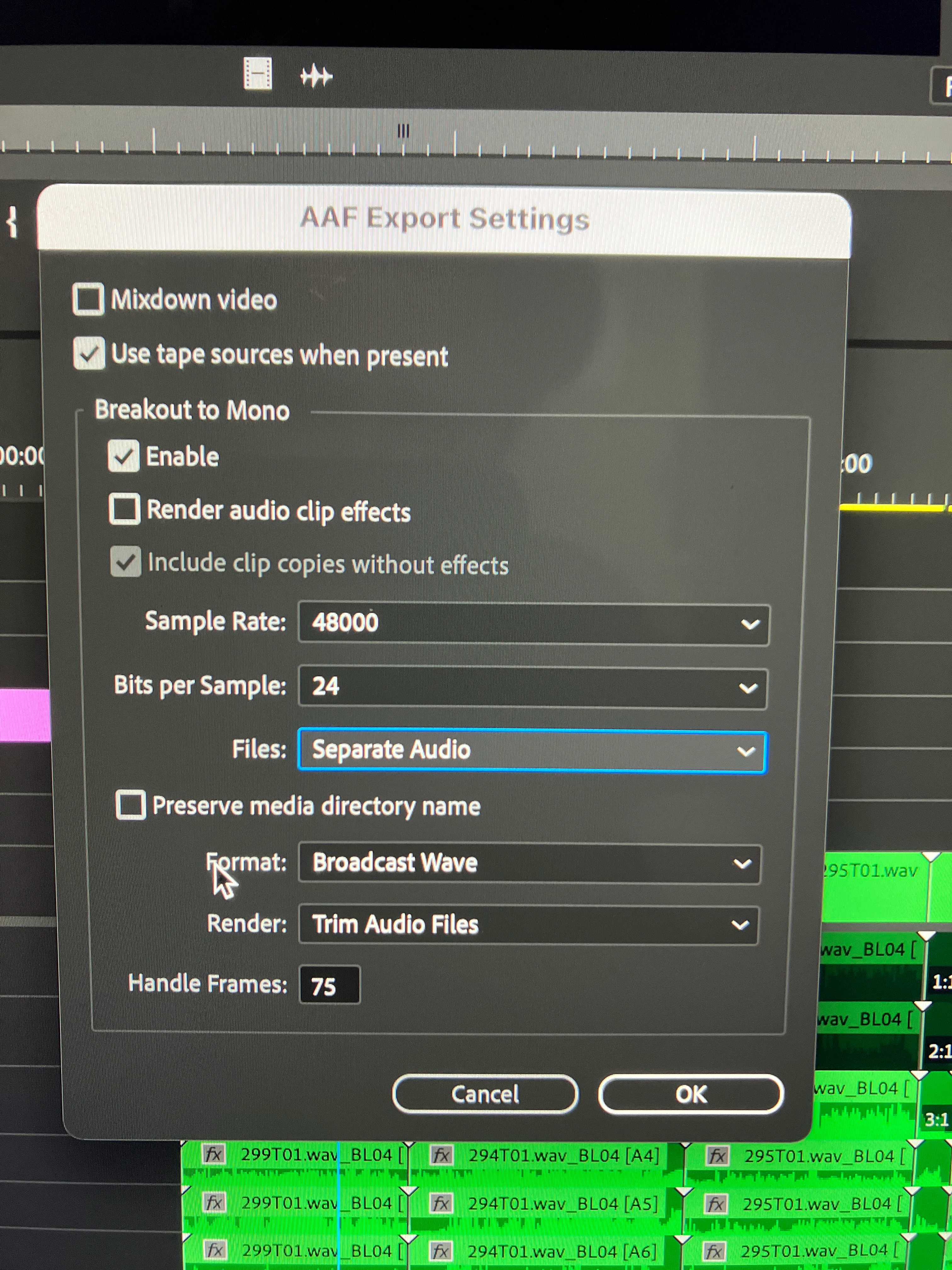 Such a strange problem here. We tested this workflow a few weeks ago and it seemed to work fine. Now for some reason A1 follows the AAF and all the SFX and music as well but not the rest of the regular dialoge tracks (boom, microports etc).