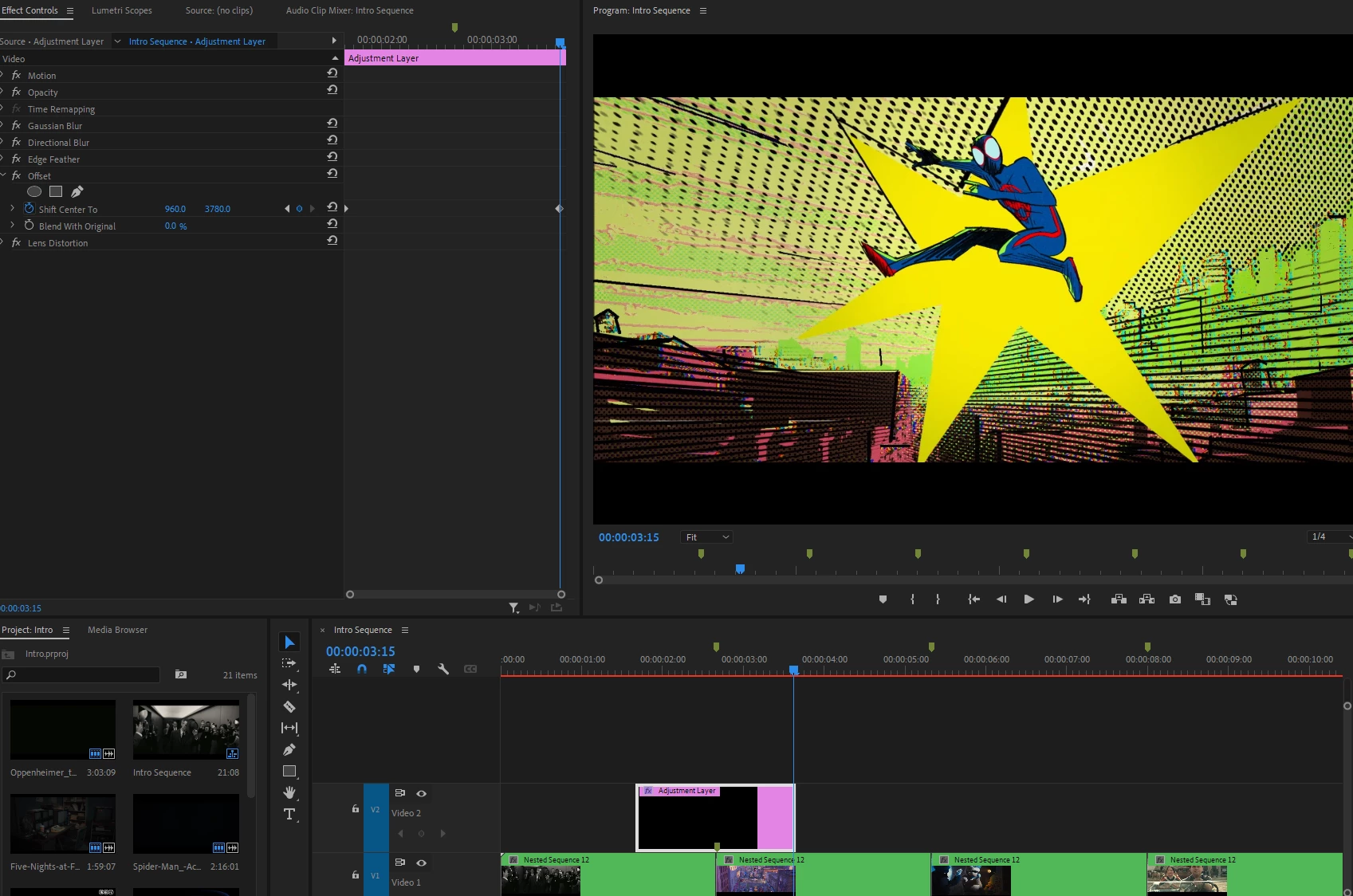 Adjustment Layer key frames in offset effect aren't affecting the video below it.