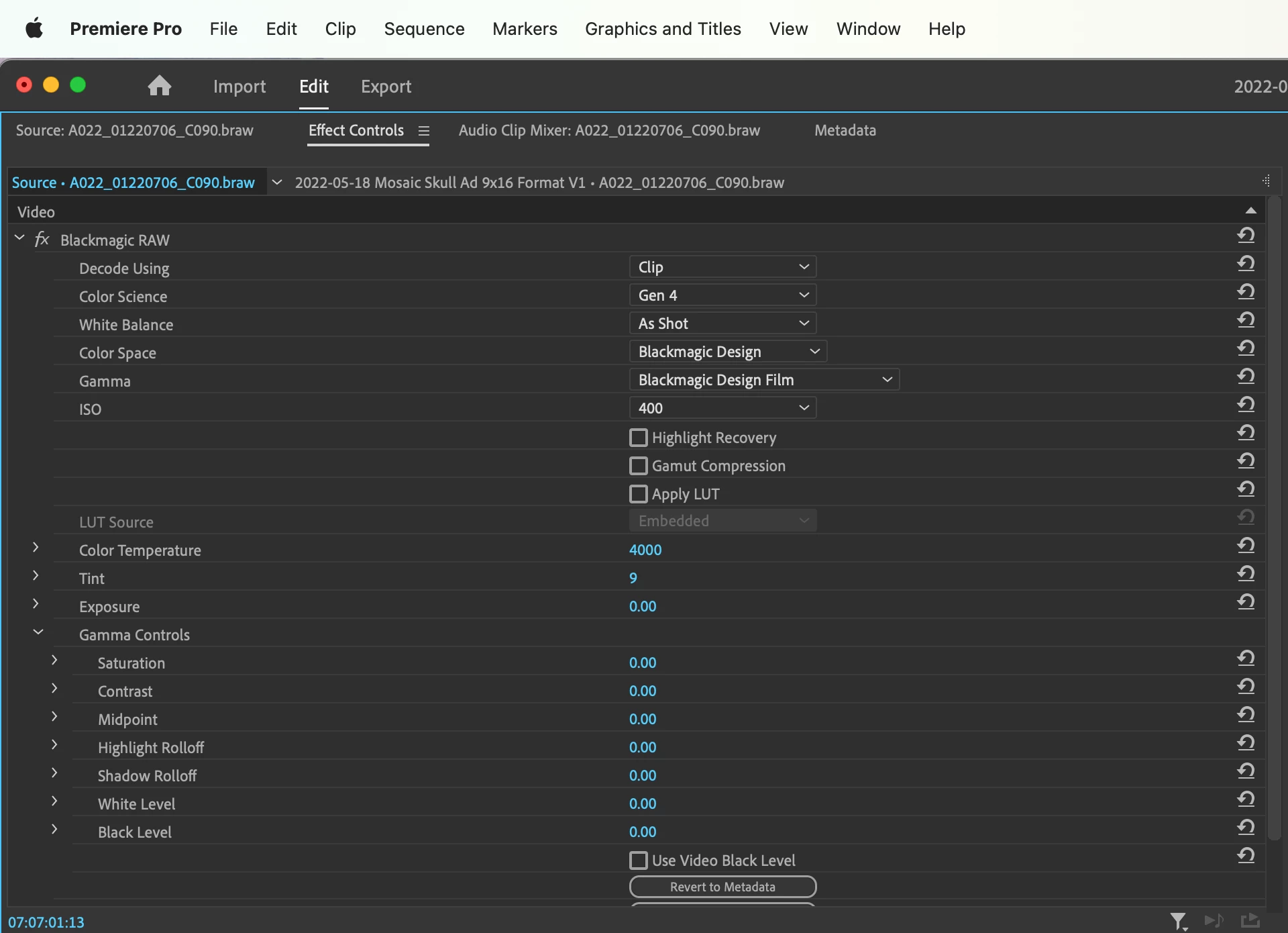 I am trying to use the Blackmagic Raw plugin to adjust the settings of the original source file. All of the guide I have seen mentioned that I should see "Master" under the effects control tab but I only see "Source". It does give me the option to change the settings but in the program monitor I am not seeing anything change. Am I doing something wrong or is this a bug with the plugin?