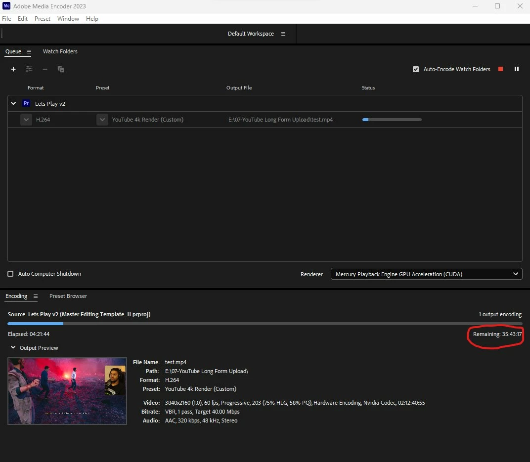 So my pridicament is that my render times have increased exponentially in the last month or so. A simple 2hr video that i would attempt to render and upscale to 4k using the YouTube 2160p 4K Ultra is now giving me estimates of 35hrs until completion with the video only being 10% complete and its current time elapsed at 5hrs 47mins.